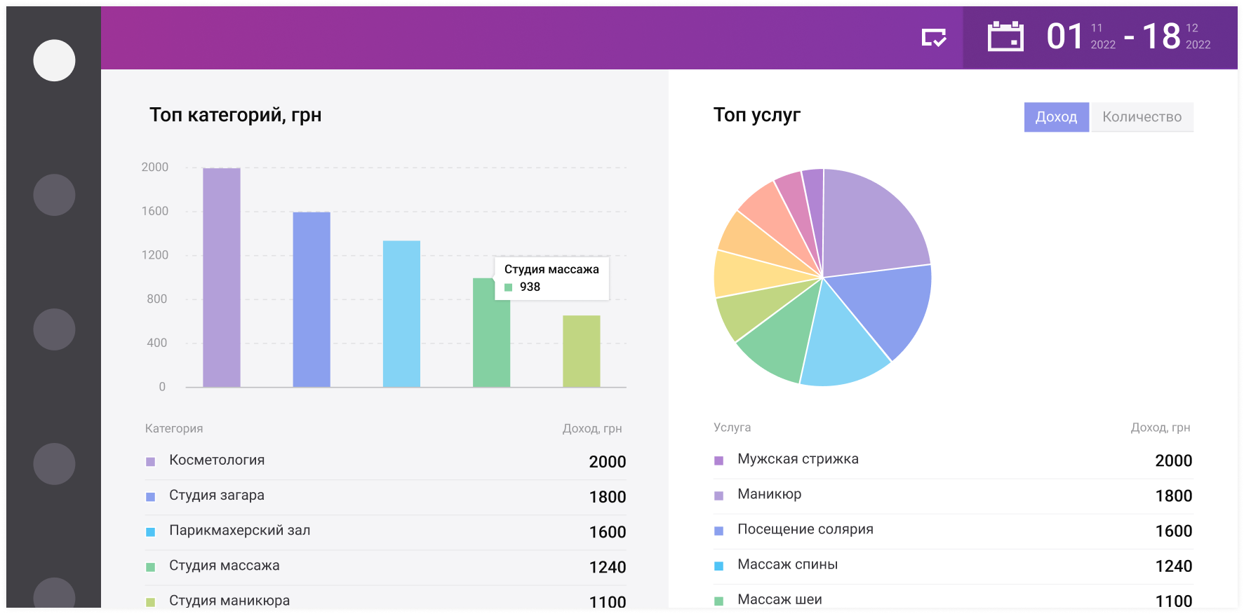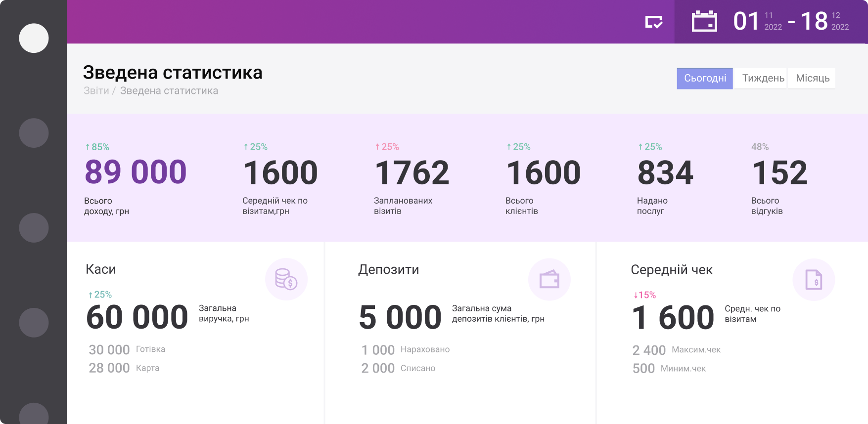 Підвищує прибуток салону. Фокусує увагу власника на цифрах, які відображають